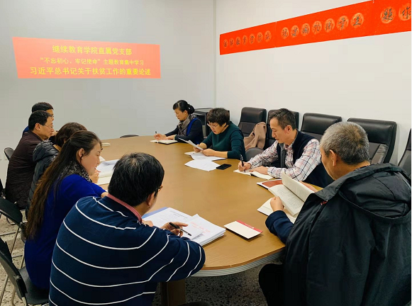 11月11日,杏彩手机网页版登录直属党支部举行了“不忘初心、牢记使命”主题教育集中学习,深入学习习近平总书记关于扶贫工作的重要论述。